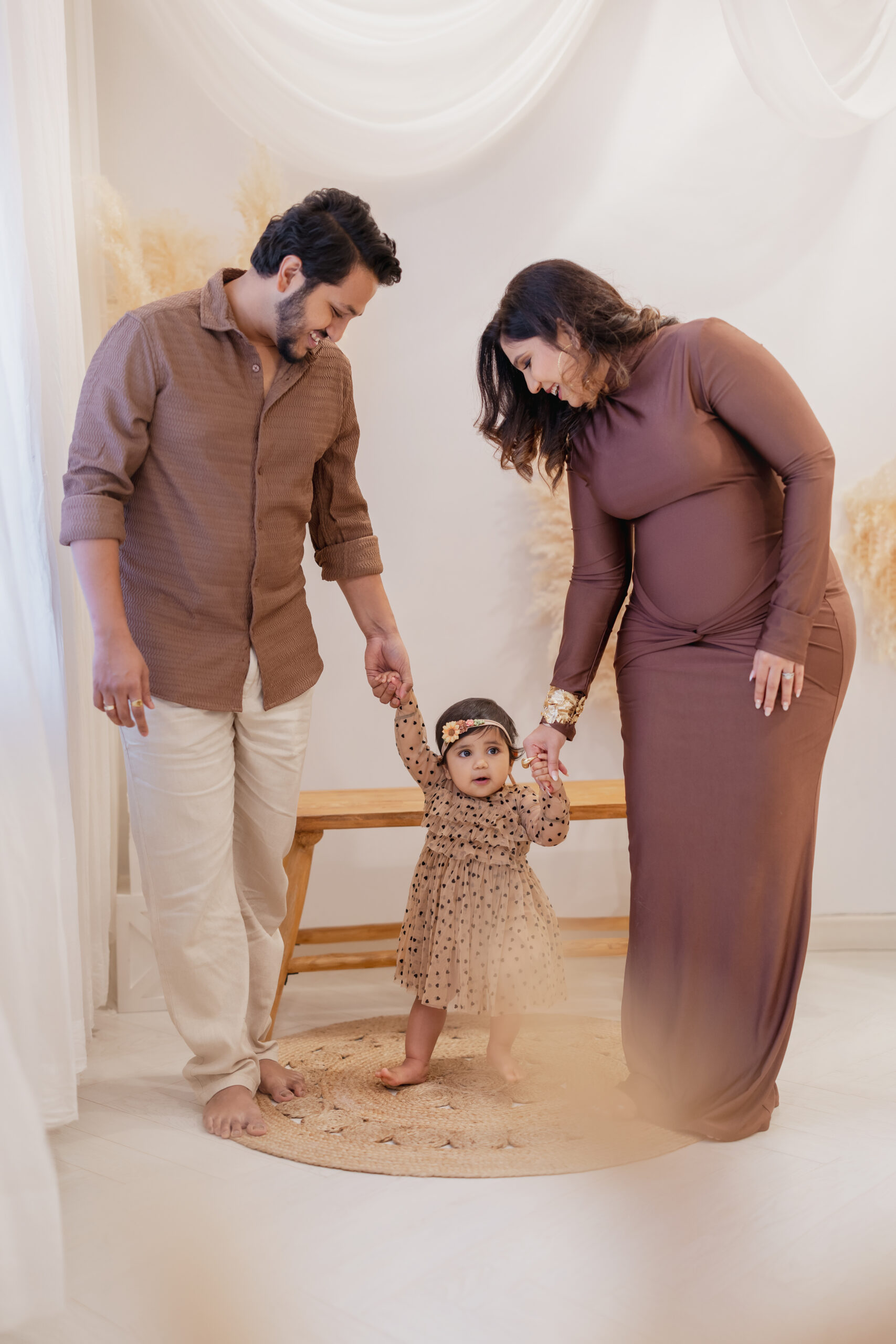 Maternity shoots are ideally scheduled during the second trimester, but it’s perfectly fine to plan it later if needed. For newborn sessions, traditional styled shoots are best done within the first 3 weeks after birth. Lifestyle newborn shoots can be scheduled anytime within the first 3–4 months.